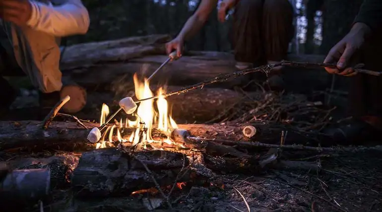 N’oubliez pas les marshmallows à faire griller au coin du feu !