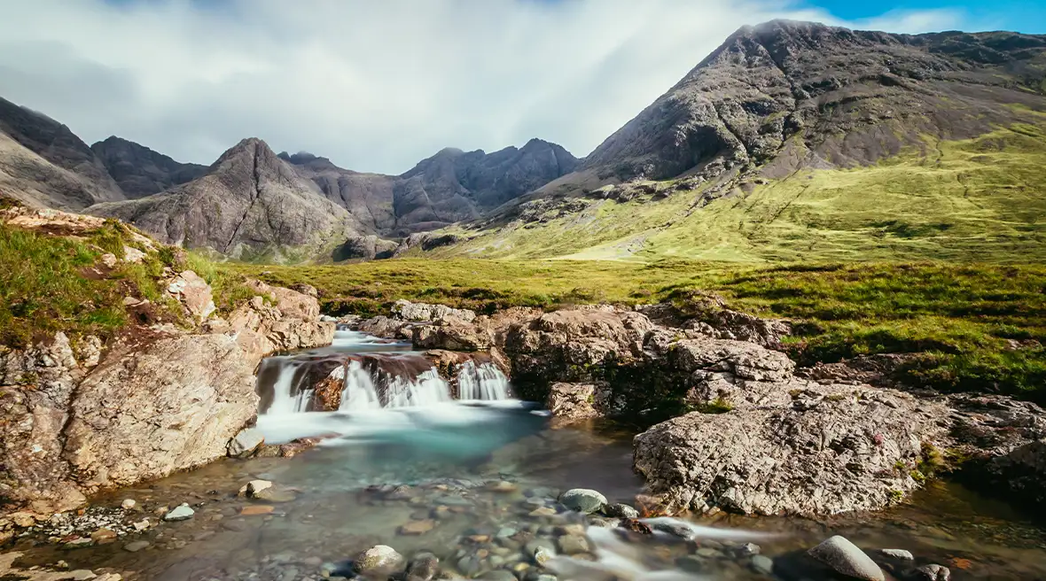 Les « Fairy Pools » au pied du mystique Cuillin sur l'île de Skye