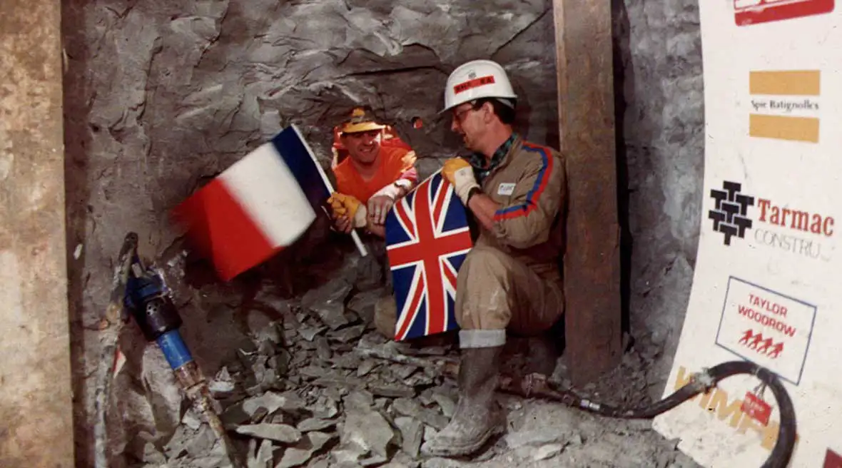 Les travaux de forage du tunnel sous la Manche ont débuté en 1987, simultanément des deux côtés de la Manche. Les tunnels anglais et français se rejoignent fin 1990 et la construction se termine en 1993. 13 000 personnes ont participé à la construction.