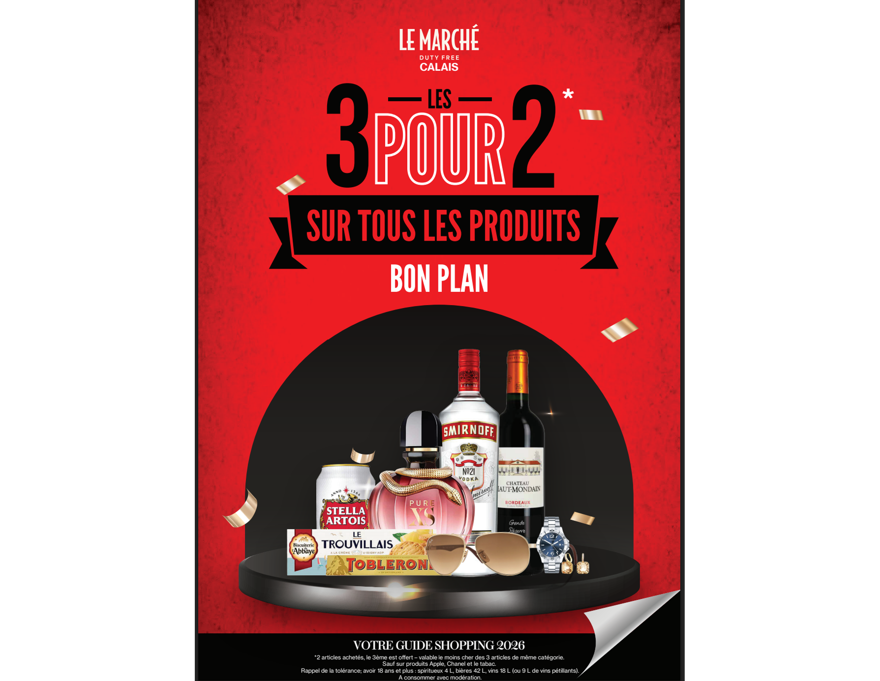 3 produits pour le prix de 2 c’est l’offre incroyable du moment chez Le Marché Duty Free. Consultez le Guide Shopping ci dessous et profitez des petits prix pour faire de grandes economies !