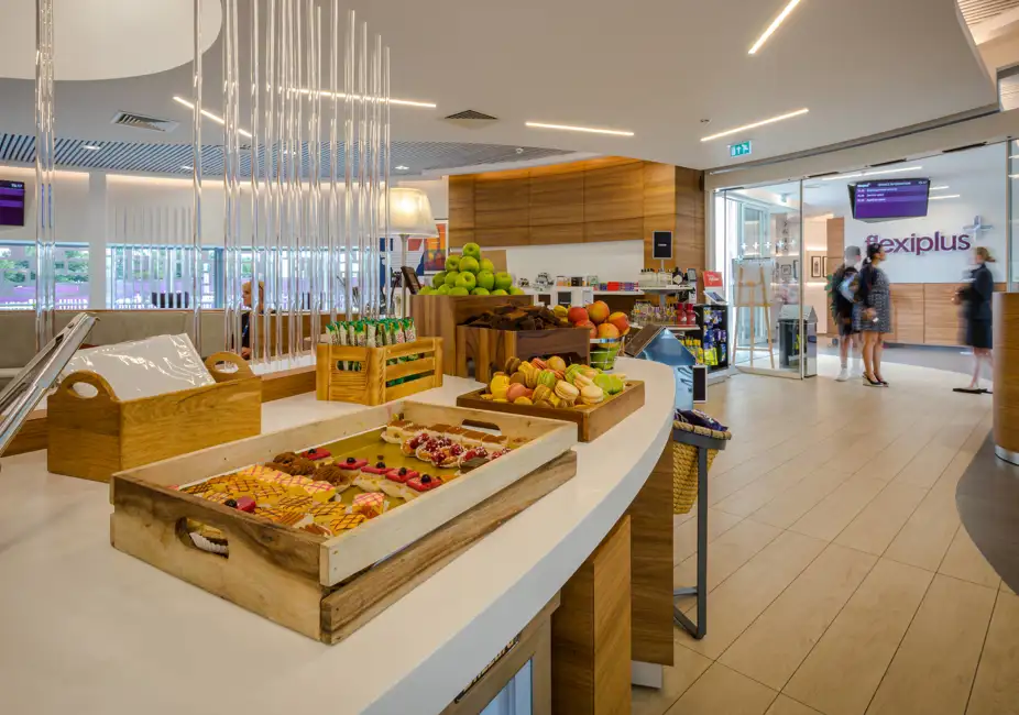 L'accès au salon Flexiplus s'effectue après le contrôle des passeports. Si vous devez enregistrer des animaux de compagnie ou si vous souhaitez vous rendre dans les boutiques et restaurants du terminal principal, vous devez le faire avant d’aller au salon Flexiplus.