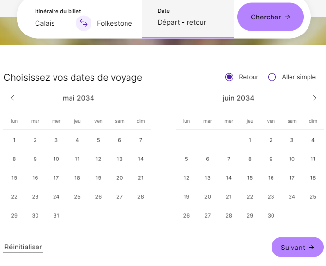 Sélectionnez le sens de votre voyage et la date souhaitée de voyage comme vous faites habituellement dans le module de réservation.