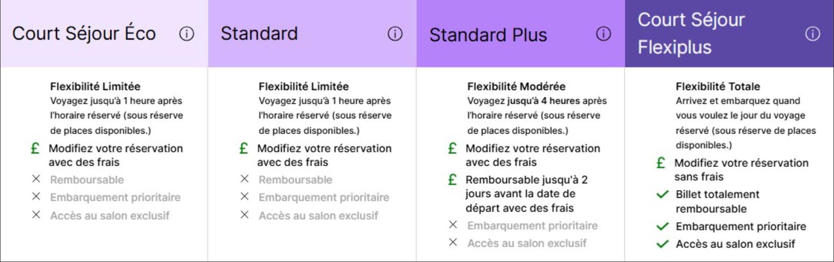 Lorsque vous allez réserver, le billet « Standard plus » vous sera également proposé, à vous de choisir l’option qui vous convient :