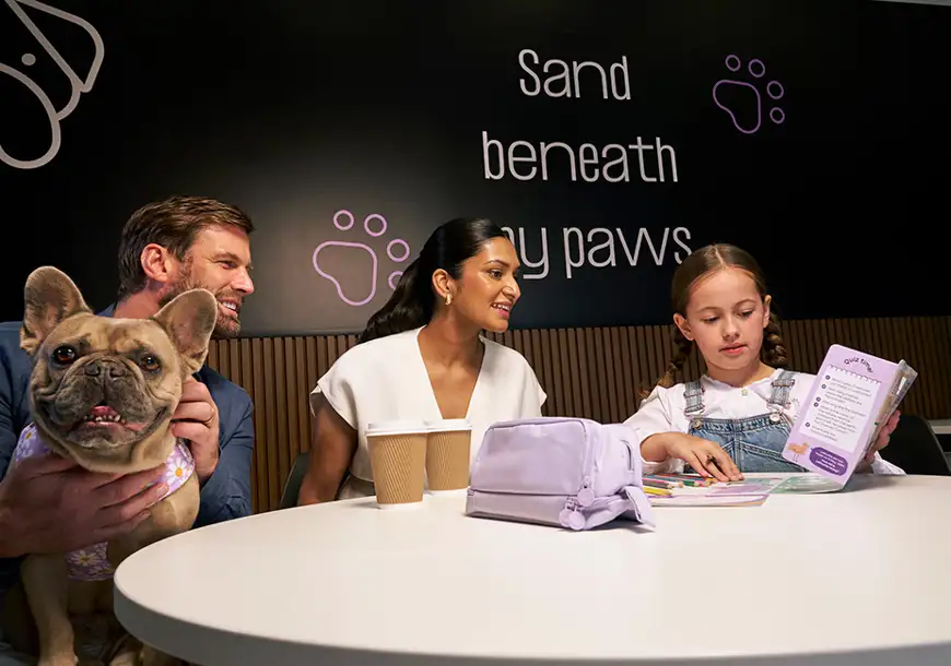 Als je een huisdier hebt, kun je hem inchecken bij de huisdierenreceptie. We hebben ook een special uitlaatgebied waar je huisdieren zich uit kunnen leven.