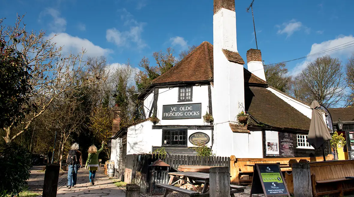 Ye Olde Fighting Cocks (De oude vechtende hanen), die door de stamgasten 'The Fighters' wordt genoemd, staat in het Guinness Book of Records. Dit is namelijk de alleroudste pub van Engeland. Er werd al bier geschonken in de 8e eeuw! In de 11e eeuw is het herbouwd. De pub voelt knus aan door de zware houten structuur en de lage plafonds. Nog een bijzonder detail: de tunnels in de kelder zijn verbonden met de kathedraal van St. Albans, en werden vroeger door de monniken gebruikt.