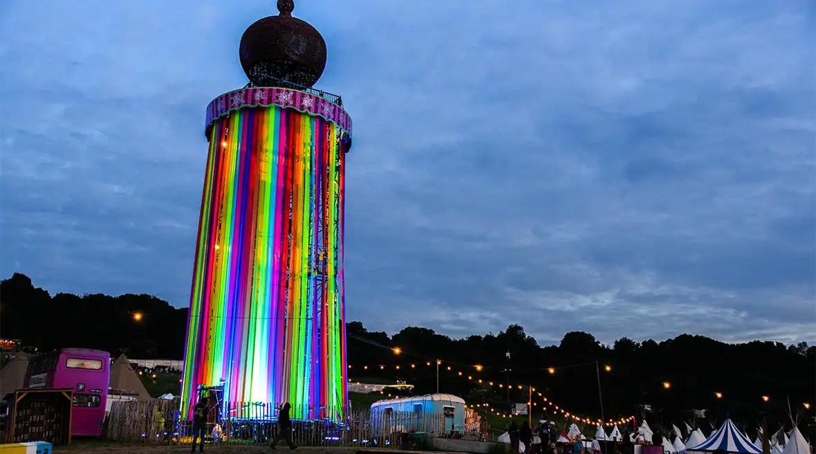 De iconische Ribbon Tower op Glastonbury Festival