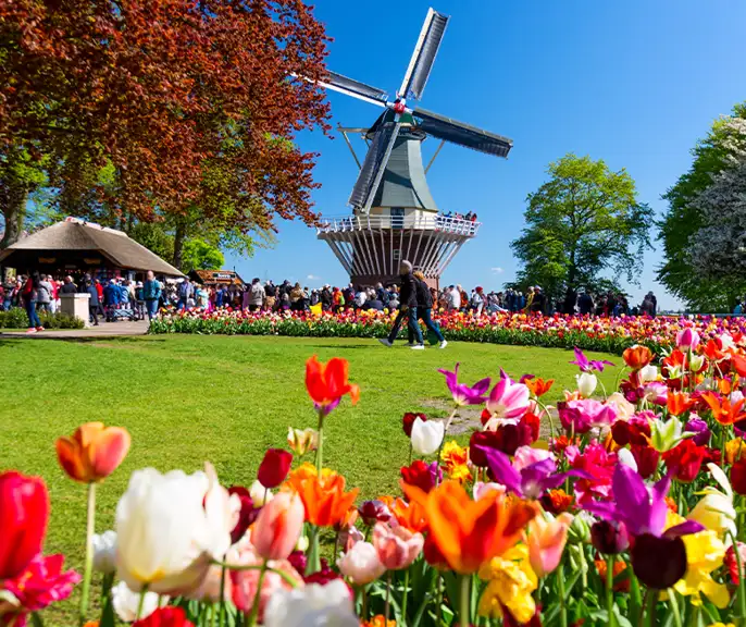 From the tulip-lined fields of the flower route to the enchanting capital of Amsterdam, the Netherlands is a low-lying land full of highlights. Hire a bicycle and explore the waterways and windmills, especially the UNESCO site of Kinderdijk in the south. Soak up the art and culture of Amsterdam at the Rijksmuseum, and eat like a local, indulging in such 'dam fine Dutch delicacies as stroopwafel and bitterballen. Visit the Keukenhof tulip festival and see the colourful fields from the sky in a helicopter.
