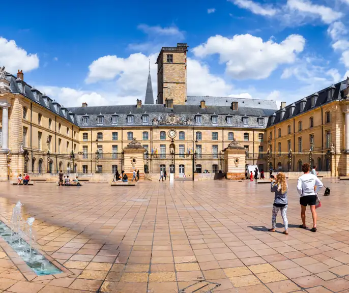 In the medieval period the Dukes of Burgundy were at times more powerful than the King of France, and they played an important role in French politics. Their palace in the centre of Dijon, built mainly in the 15th and 16th century, is a stunning statement of ducal power and influence. With its two neo-classical porticos, the palace fronts impressively onto the Place de la Liberation, a large public square with fountains, cafes and restaurants with outdoor seating.