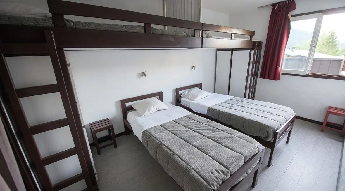 A four-bedroomed room in the Les Contamines centre. It’s basic but functional and clean | Credit: UCPA