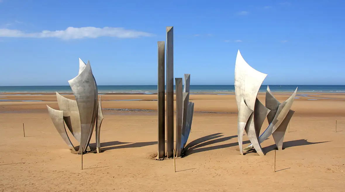 Particularly striking is the Omaha Beach Memorial, marked by a conceptual statue of giant metallic sword shapes bursting up through the surf. Here you can find a museum featuring comprehensive details of the D-Day landings, with artefacts, timelines and personal items from those involved in the fighting, helping visitors understand the human side of the conflict.