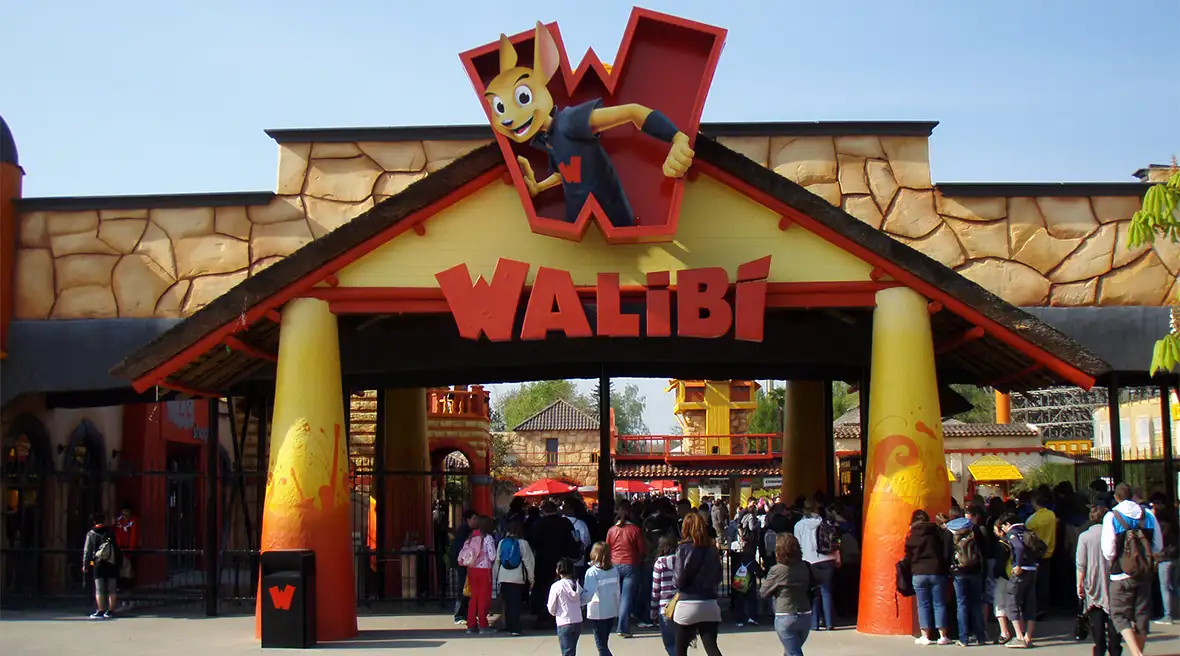There are attractions for all ages at Walibi (Credit: De ingang van het Belgische themapark Walibi Belgium, by Benjilambrecht, CC BY-SA 3.0, via Wikimedia Commons)