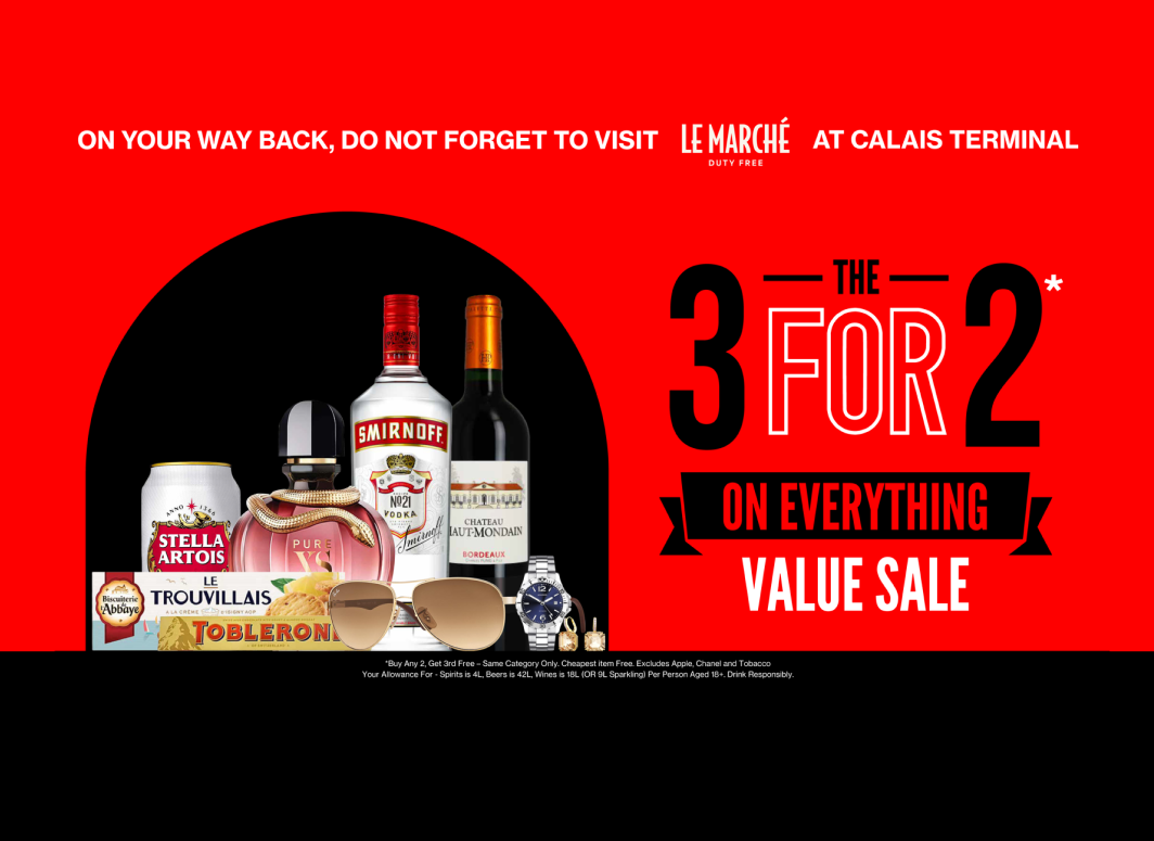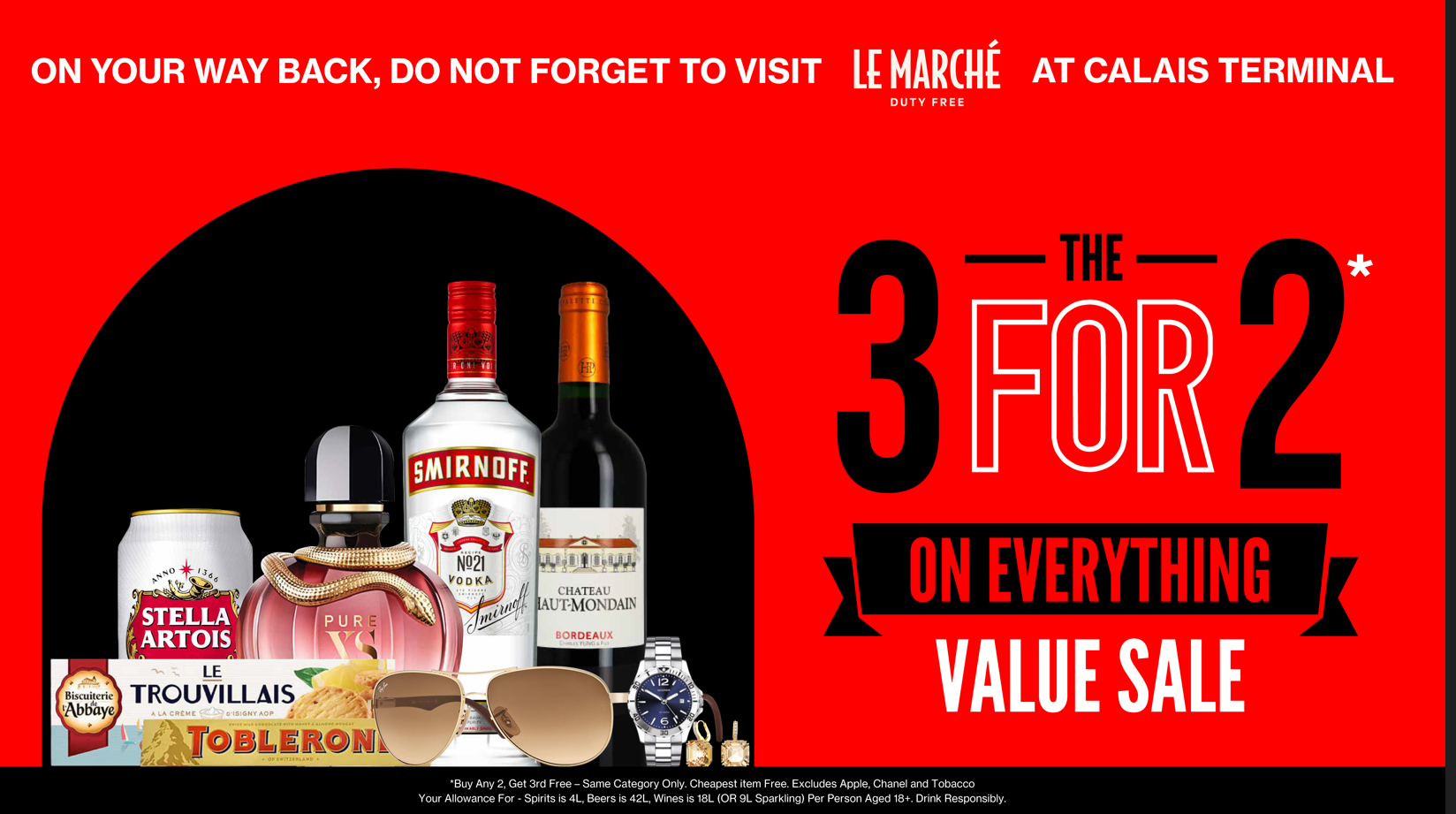 Le Marché Duty Free brings you exceptional savings across the entire store with an exclusive 3 for 2 offer (excluding Apple, Chanel, and tobacco).